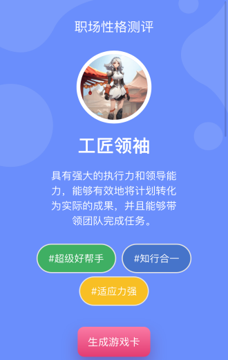 猎英职业生涯规划神器,可进行职场性格测试,生成专属 “工匠领袖” 等角色卡,还能填写、分享简历,助力用户探索职业方向,为职业生涯规划提供趣
