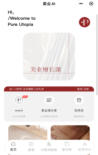 聚焦美业领域。有美业增长课助行业成长,直播板块可学习美业知识,AI 美询星服能解答美业问题,素材库提供美业相关素材,还有会员中心管理个人预约